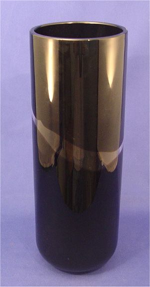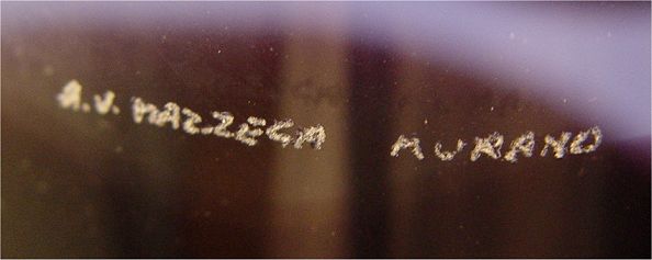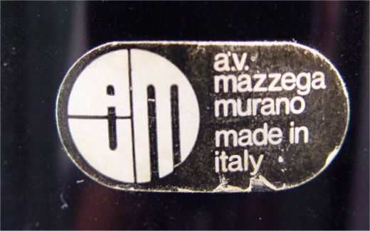 AV MAZEGGA MAURANO ART GLASS VASE: Deepest amethyst with a ribbon of clear, 14 1/2''h. Label and etched marks.