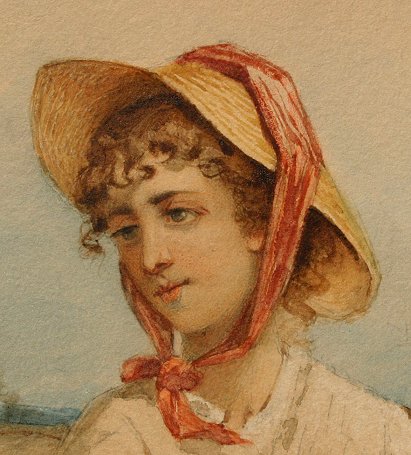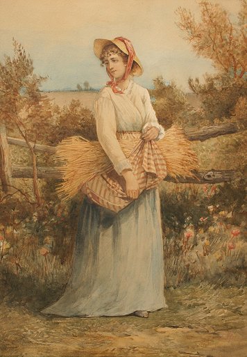 MAIDEN WITH HAY: W/C, 22'' x 15'', signed E. Hobson, possibly Henry E. Hobson, gold frame, under glass, 31'' x 25''. On board.