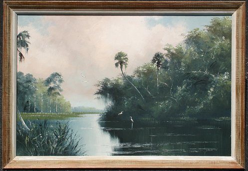 NEWTON, Sam, (American, 20th C.): Highwaymen River Landscape, Oil/Masonite, 24'' x 36'', signed, period frame, 30'' x 42''. Est. $1500/2500**