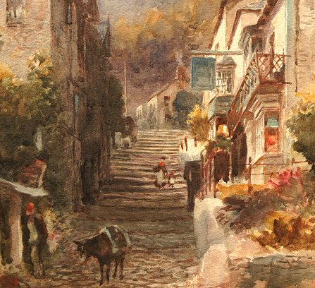 LEYMAN, Alfred, (British, 1856-1933): European Village Scene, W/C, 21'' x 15'', signed, painted gold frame, 29'' x 24''.