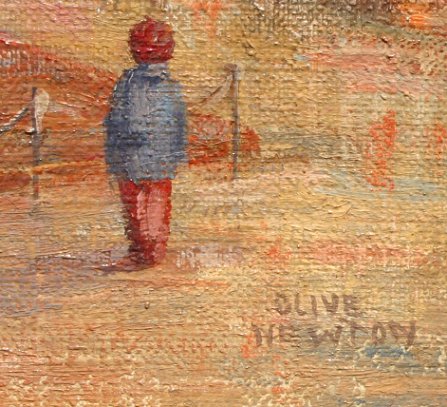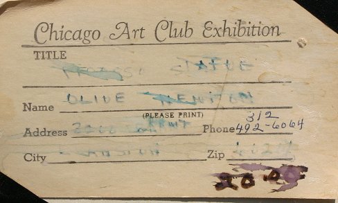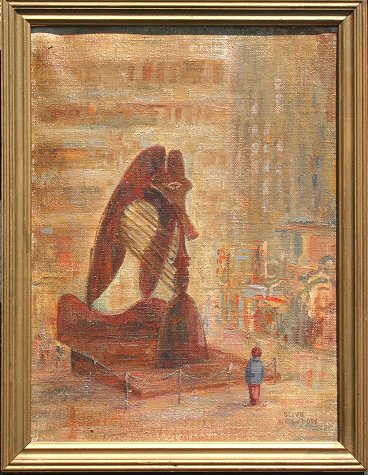 NEWTON, Olive, (American, 20th C.): ''Picasso Statue'' Chicago, O/CB, 16'' x 12'', signed, painted gold frame, 18'' x 14'', Chicago Art Club label verso.