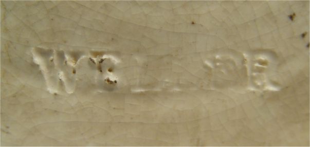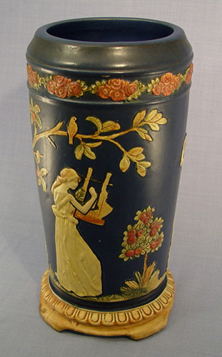 WELLER POTTERY ''BLUE WARE'' LAMP/VASE: With dancing nymphs, factory drilled for use as a lamp. 13 1/4'' h.