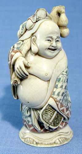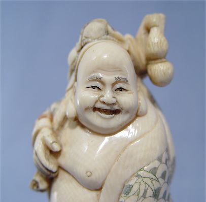 CARVED IVORY BUDDHA: Artist signed, carved and dyed, 4'' h.