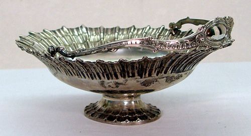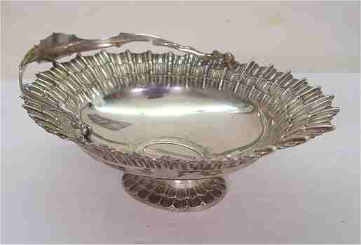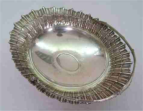 AUSTRIAN / HUNGARIAN FINE 800 SILVER BASKET: CA. 1891-1901. Fluted border and pedestal, swing handle. 12'' x 9'' x 4''h. Approx. 433 grams or 13.92 oz.