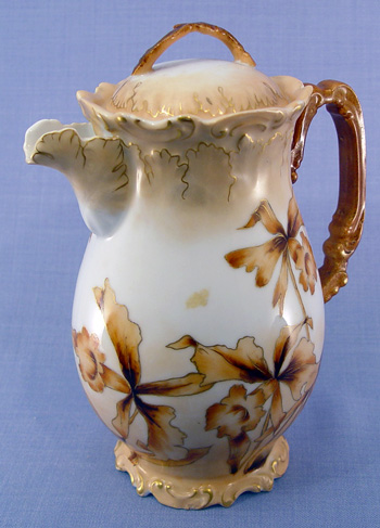 FRENCH LIMOGES CHOCOLATE POT: Coiffe, Ca. 1891-1914. Hand painted in a daffodil design, 9 1/2''h.