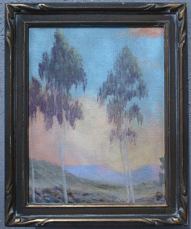 SCHLEUSSNER, Elizabeth, (American, 1881-1956): Plein Aire California Landscape, O/CB, 13 3/4'' x 10 3/4'', signed, carved period frame with minor wear, 17'' x 14''. Needs cleaning. Est. $400/600**