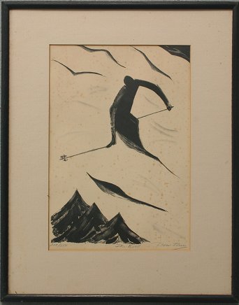KLEIN, Doris, (American, 20th C.): ''Ski Bird'', AAA Lithograph, sight size 14'' x 9 3/4'', pencil signed, titled, numbered 200/250, original black frame, 21'' x 17'', AAA label verso. Foxing throughout. Est. $200/400**