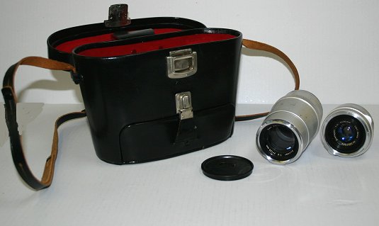 2 ZEISS CAMERA LENSES DISTAGON/SONNAR W/ORIGINAL LEATHER CARRYING CASE: Distagon 1:4=35mm and Sonnar 1:4 f=135mm, estate find, Sonnar has exterior scratches and some buildup on inside of lens, case in good condition. Sold as is.