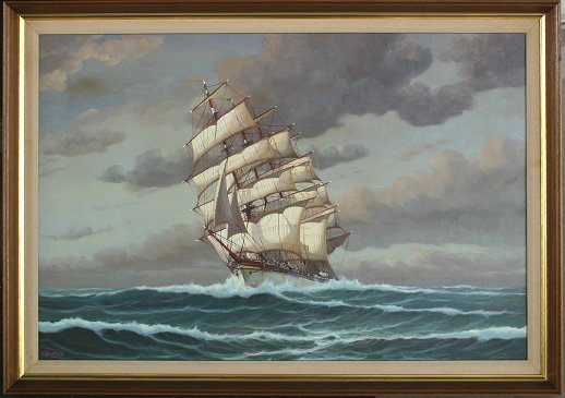 WINFRIED, J., (American, 20th C.): Clipper Ship, O/C, 24'' x 36'', signed, original frame, 28'' x 40''.