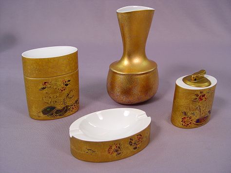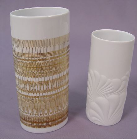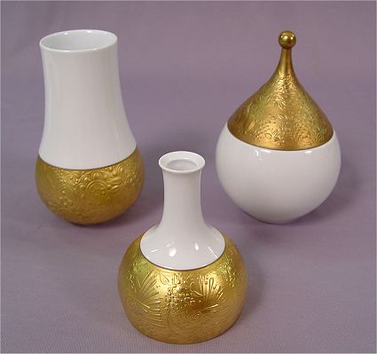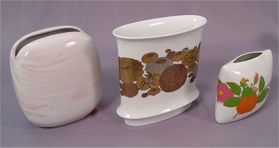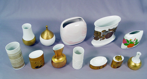 8 PC ESTATE COLLECTION OF ROSENTHAL PORCELAIN: To include a Bjorn Wiinblad 3 pc. smoke set with lighter, covered box, and ashtray. Also a Queensberry Marble pillow vase, 8 3/4'', a variety of studio vases by designers incl. Wiinblad. The largest is 8 3/4''h.