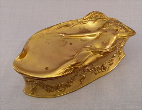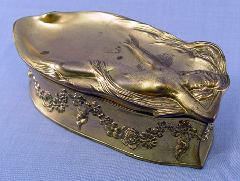 BENEDICT ART NOUVEAU JEWEL CASKET: Hinged lid, original lining, signed on the underside. 3''h. 8 1/4''l.