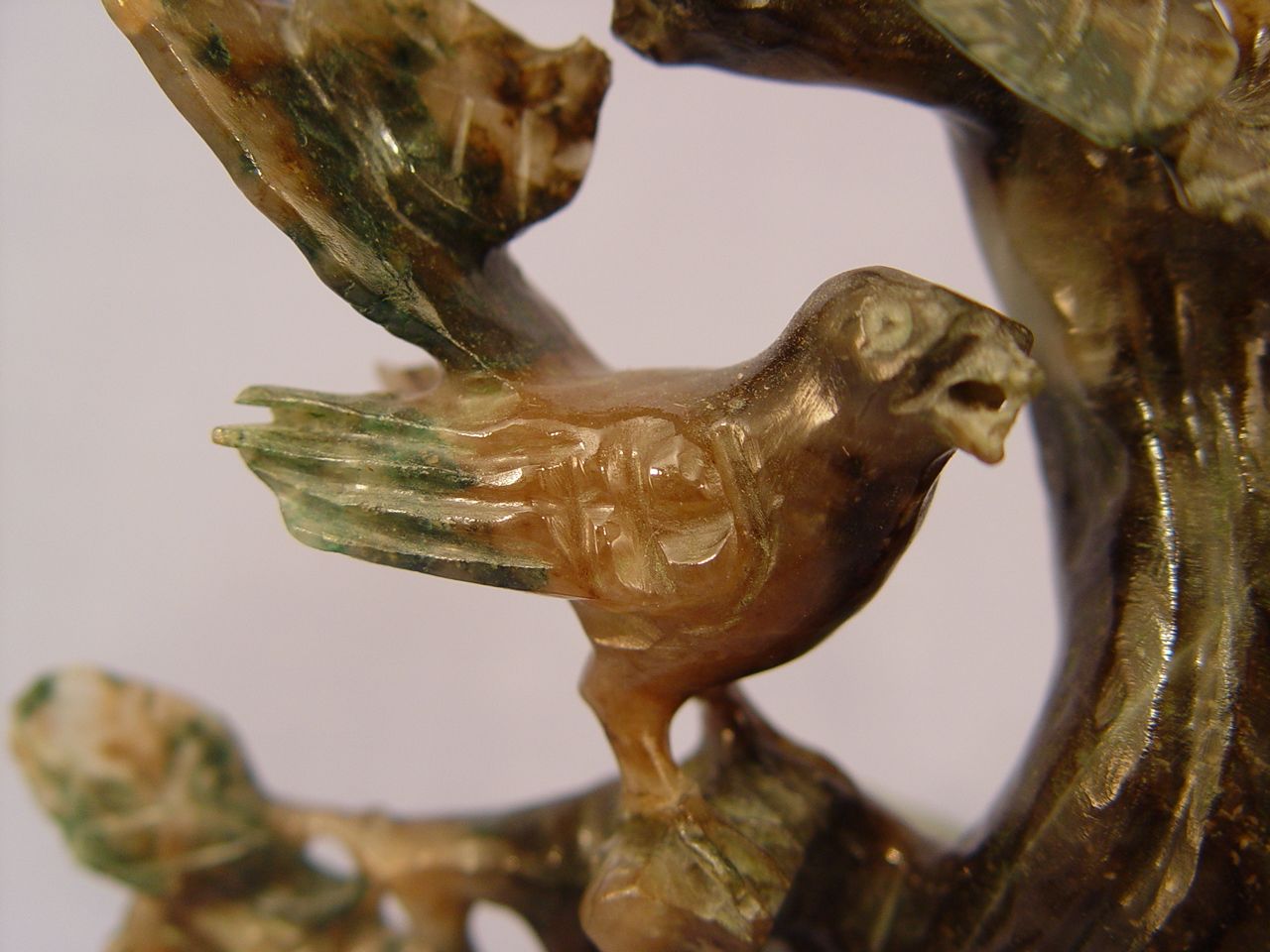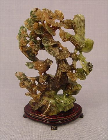 CHINESE CARVED JADE BIRD GROUP: 2 birds in a tree, 7''h. x 5''.