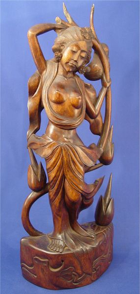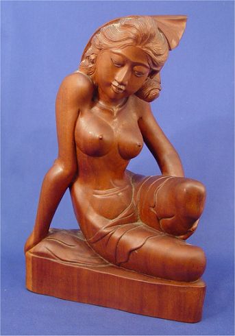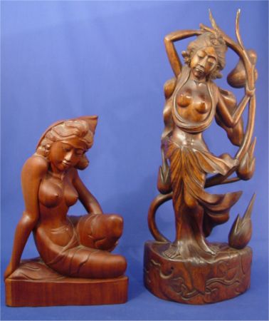 2 CARVED MAHOGANY SEMI NUDE CARVINGS: 12'' and 19 1/2''H.