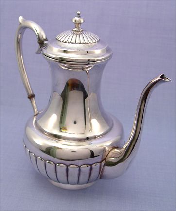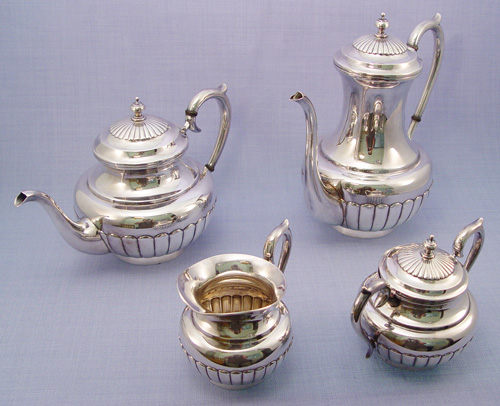 950 STERLING TEA SERVICE: 4 piece set to include coffee (9 1/2'') and tea pot (7''), cream pitcher, and covered sugar. Approx. 2049 grams or 65.88 oz. Stamped ''Sterling Silver 950'', no makers marks.
