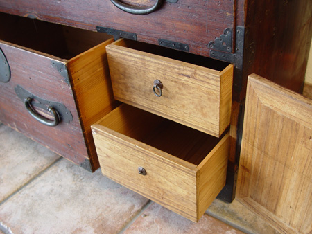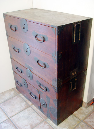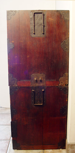 19th C ORIENTAL TWO PART CAMPAIGN CHEST: Original heavy iron pulls, age relevant finish. 44'' h. x 35 1/4'' x 17 3/8''
