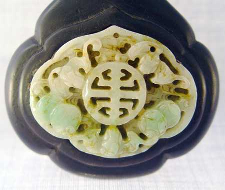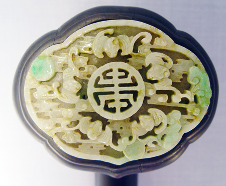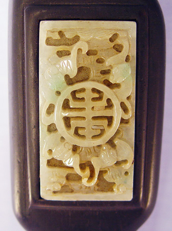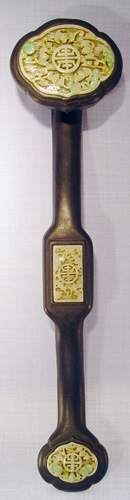 CHINESE JADE AND ROSEWOOD SCEPTRE: Early 20th C., 19 1/2''l.