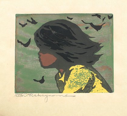 NAKAYAMA, Tadashi, (Japanese, 1927-): ''Girl in the Wind'', Woodblock, 11 3/8'' x 12 1/2'', full margins, several minor indentions. Est. $800/1200**