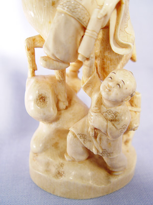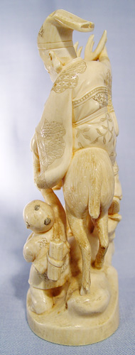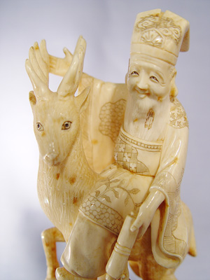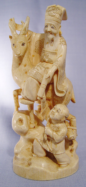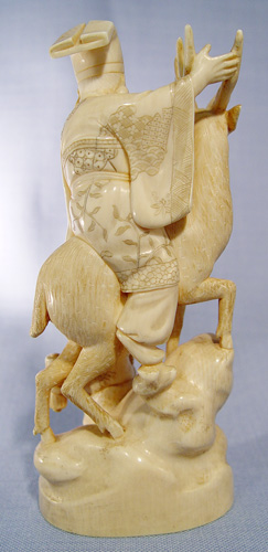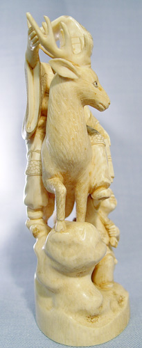 CARVED IVORY ELDER ON ANTELOPE: Signed, 6 3/4'' h.