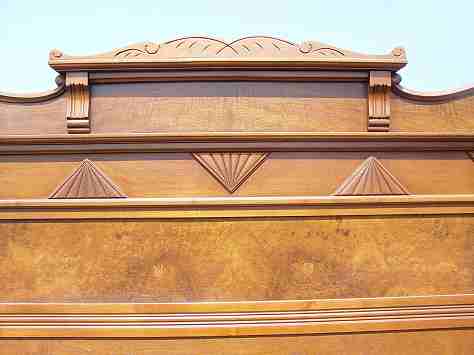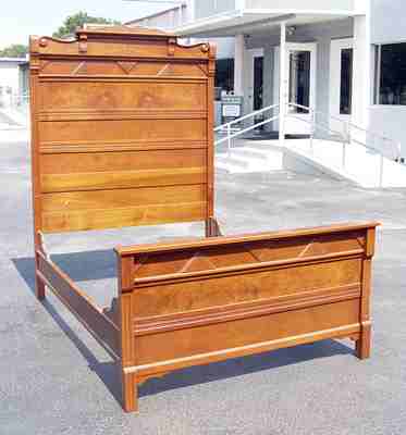 TALL VICTORIAN WALNUT BED: Burl wood panels and incised carvings. It still stands at the original height. Original side rails included. Headboard is 78''h. foot is 30 1/2''h, bed is 58 1/2''w. and incl., original rails and height.