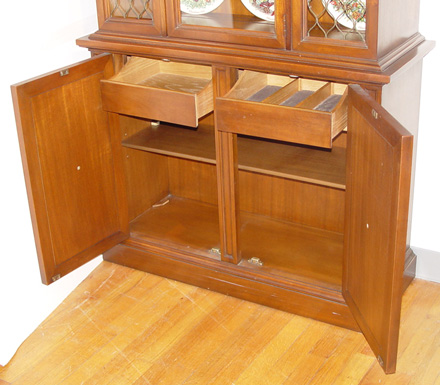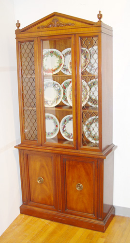 20th C ITALIAN STYLE CHINA CABINET: Peaked crest over glass front fitted with mesh wire. 79''h. x 38'' x 15''.