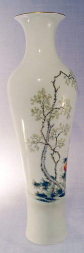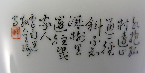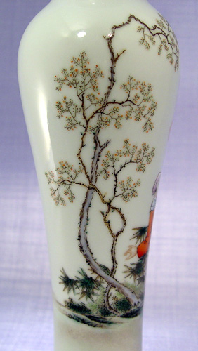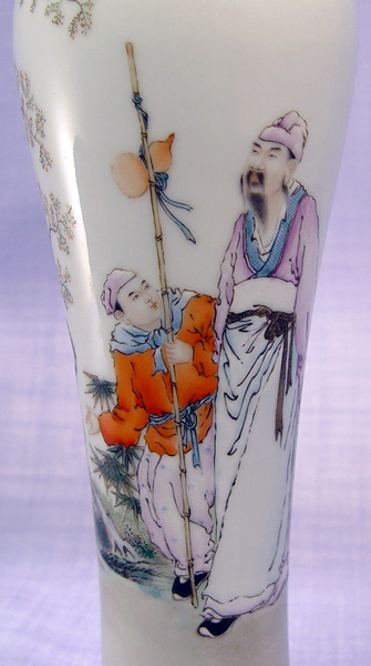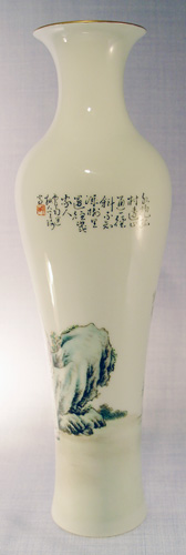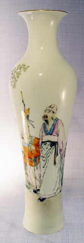 EARLY 20TH C CHINESE REPUBLIC PERIOD VASE: Slender form hand painted with figures, poem inscription verso. Signed. 11 1/2''h.