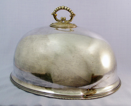 SHEFFIELD SILVERPLATE MEAT DOME: Joseph Rogers & Son. With loop for hanging. 16''l, 10 1/2''h. including beaded handle.
