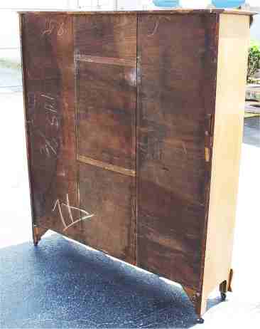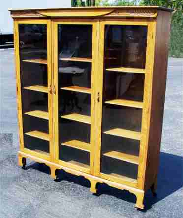 TURN OF THE CENTURY TIGER OAK BOOKCASE CABINET: Quarter sawn golden oak bookcase, three doors, interior adjustable shelves. 62''h. x 55'' x 13 1/2''.