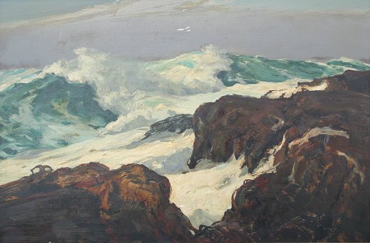 CONNAWAY, Jay, (American, 1893-1970): ''Extreme Low Tide'', O/B, 24'' x 36'', signed, period frame with wear, 30'' x 42'', titled and signed verso, old label affixed. Abrasion with paint loss in sky, needs cleaning.