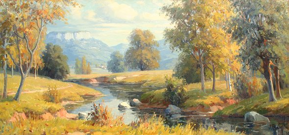 BATALLE, Julio Murla, (Spanish, 1926-): ''Peaceful Valley'', Oil/C, 23'' x 49'', signed, framed, 33'' x 59''.