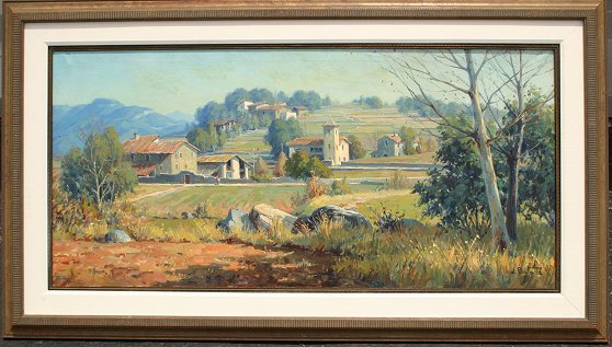 BATALLE, Julio Murla, (Spanish, 1926-): ''Farms on the Hillside'', Oil/C, 24'' x 50'', signed, framed, 34'' x 60''.