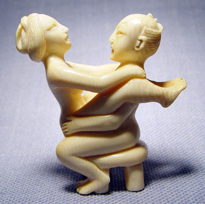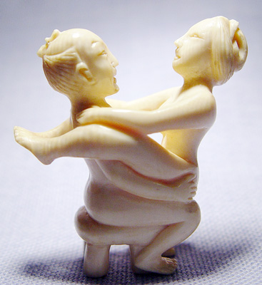 CARVED IVORY EROTICA MINIATURE: No signature noted, approx. 1 3/4''h.
