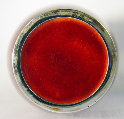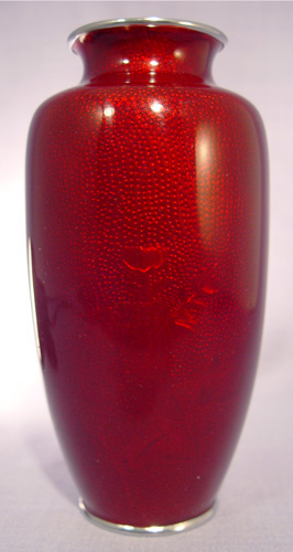 JAPANESE RED PIGEON BLOOD CLOISONNE VASE: 7 1/4'' h. Marked Made in Japan on the silver base.
