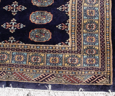 HAND WOVEN PAKISTANI BOKHARA WOOL CARPET: Approx. 6'3'' x 4'3'', blue ground with multiple medallion to center.