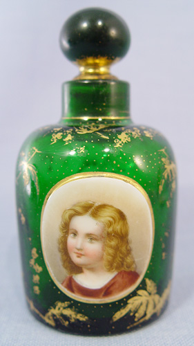 EARLY 20TH C PORTRAIT BOTTLE: Moser or possibly English, hand painted portrait of a young girl, 4 1/2'''' h.