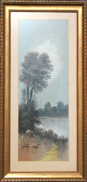 CHANDLER, William, (American, 1854-1928): River Scene, Pastel, 21 1/2'' x 7 1/2'' sight size, signed, framed, 27'' x 14''. Minute paper loss in mid-right margin.