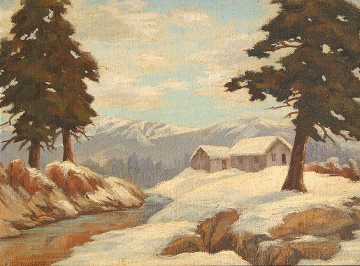 DOUGLAS, Earl Graham, (American, 1879-1954): Winter Landscape, O/CM, 9'' x 12'', signed, framed, 13'' x 16''. Needs cleaning.