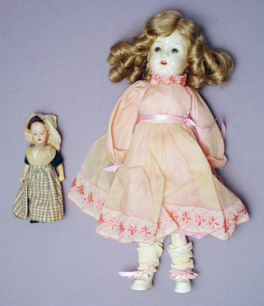 ARMAND MARSEILLE DOLL SOLD WITH A TREGO DOLL: 1) The Armand Marseille, stamped on the back of her head, ''Armand Marseille Germany 390 12/OX AA, bisque head with sleepy eyes, open mouth with 4 teeth, detached brown wig, 8''tall. 2) American made Trego doll is Ca. 1918-1921. She is all composition with jointed limbs, open eyes, open mouth with teeth, 18''tall.