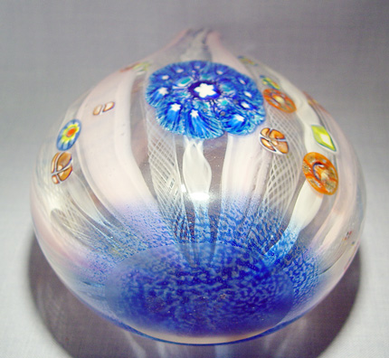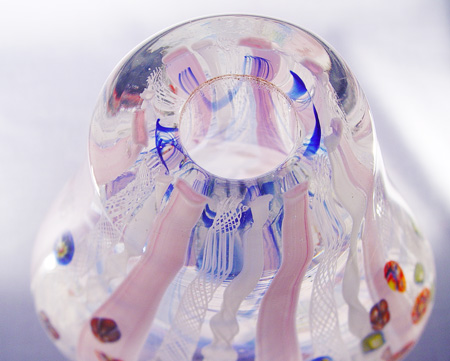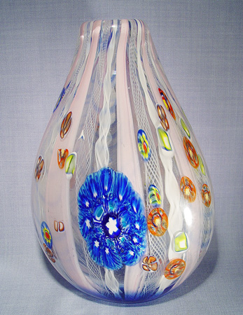 MURANO LATTICINO GLASS VASE: Canes and bands of latticino, 11''h.