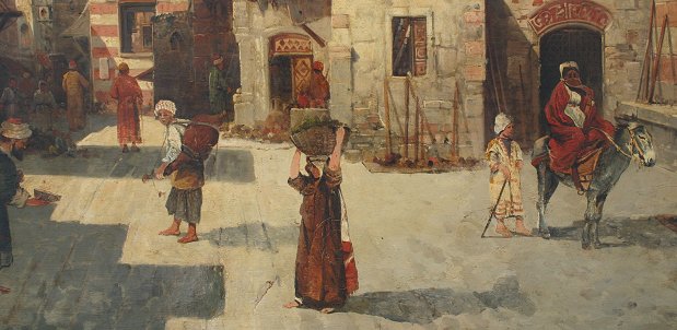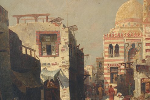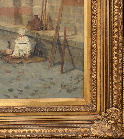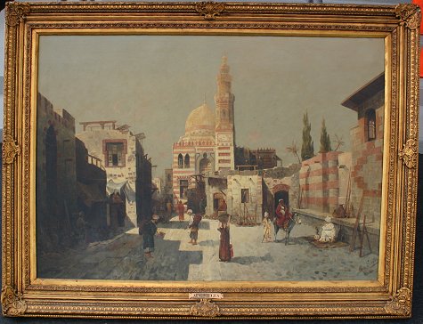 VON SIEGEN, August, (German, 19th C.): ''Cairo Marketplace'', O/C, 38 1/2'' x 56'', signed, framed, 44'' x 62''. Patch visible verso, needs cleaning, abrasions in lower margin. Est. $8000/12000**