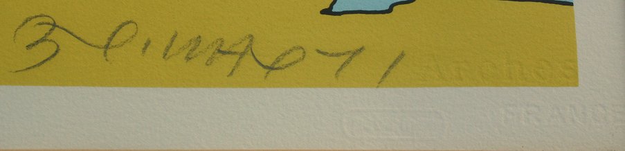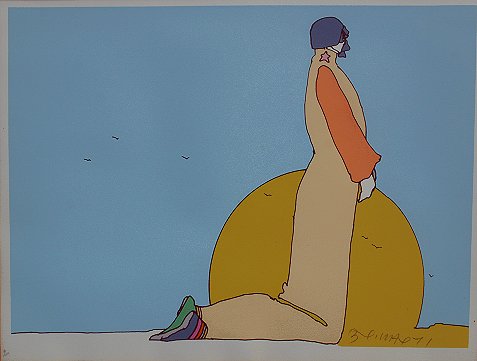 MAX, Peter, (American, 1937-): ''Bowing to the Beginning'', Serigraph on Arches, 21'' x 29'' sight size, pencil signed and dated '71, numbered 18/100, in chrome frame with wear, 29 1/2'' x 35''. Est. $1500/2500**