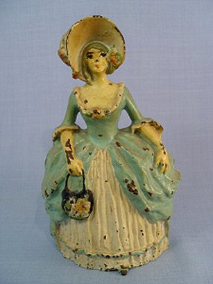 COLONIAL WOMAN CAST IRON DOORSTOP: By Litton products, some loss to the original paint. 10 1/2''h.