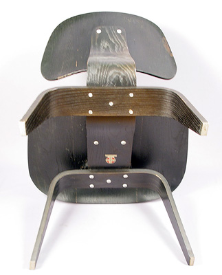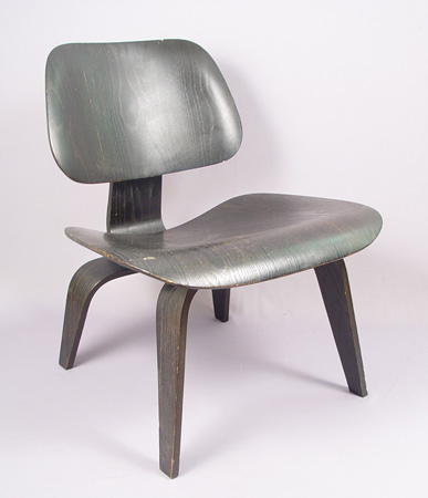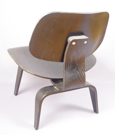 EAMES MID CENTURY LCW CHAIR EVANS PRODUCTS: Charles & Ray Eames LCW chair by Evans Products Ca 1945. Later distributed by Herman miller. Molded ebonized birch plywood seat, back and frame. Original rubber mounts in excellent condition. One small chip to top. 22''w x 22'' d x 26''h.