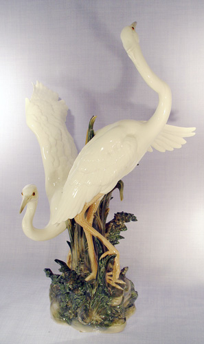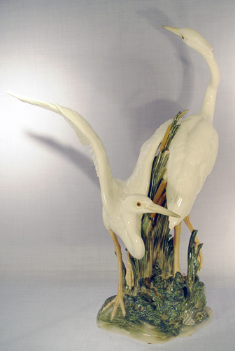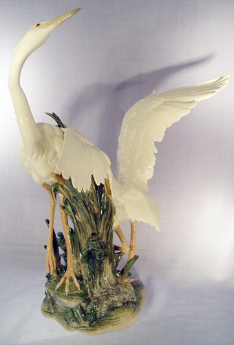 GRACEFUL LLADRO SCULPTURE ''HERONS'': Number 1319, 22''h, retailed for $2625 in 1996. Free of chips, cracks, or repairs.
