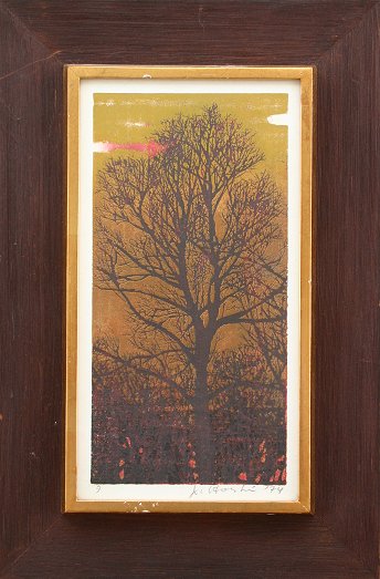 JOICHI HOSHI ''Evening'' WOODBLOCK: Sight size 10 3/8'' x 5 3/8'', pencil signed, Kanda custom frame with minor wear, 14 1/2'' x 9 1/2''. Est. $600/800**