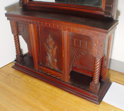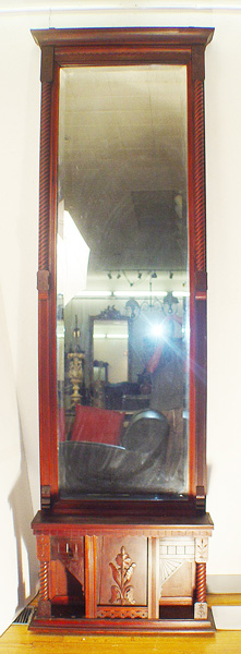 9' TALL EASTLAKE VICTORIAN WALNUT PIER MIRROR: Featuring spiral carved stiles and incised decoration. Descended thru the Henry Clay family. Approx. 8'11'' tall, 21'' w. x 9'' d. Please call for condition.