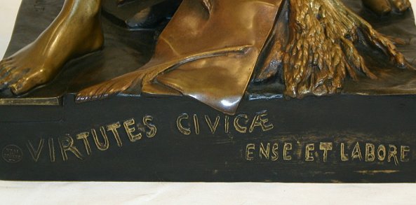 PICAULT, Emile, (French, 1833-1915): ''Virtues Civicae Ense Et Labore'', Bronze, 36'' h., impressed signature, Vrai Bronze stamp, removable sword.