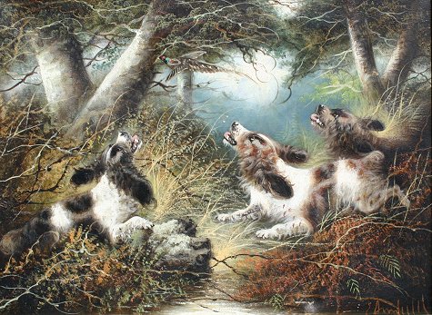 ARMFIELD, Edward, (British, 1817-1896): 3 Spaniels birding, O/C, 12'' x 16'', signed lower right, encased in contemporary frame, 15'' x 19''.