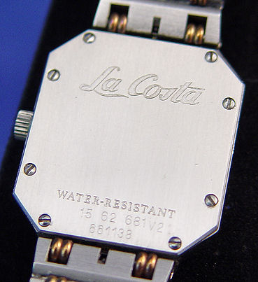 LADY'S CONCORD ''LA COSTA'' WRIST WATCH: Pinstripe dial marked CC Concord Quartz Swiss, back held in place by tiny screws and marked Water.Resistant, serial # 15 62 681V2 661138, 6 3/8''l.