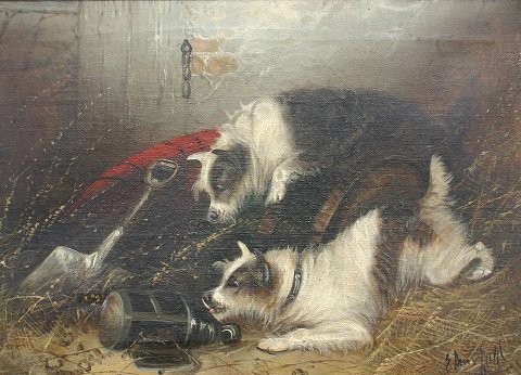 ARMFIELD, Edward, (British, 1817-1896): 2 terriers with rat in lamp, O/C, 10 1/2'' x 14 1/2'', signed lower right, encased in contemporary frame, 14 1/2'' x 18 1/4''.