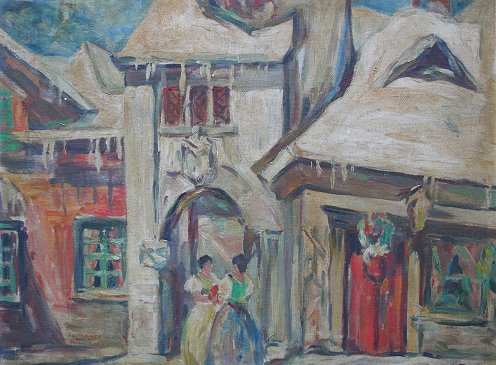 WILLIAMS, Florence White, (American, 1900-1953): Town Scene with Courtyard, O/CB, 12'' x 16'', signed LR, wooden frame, 14'' x 18''.